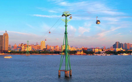 松花江观光索道坐落于哈尔滨市道里区,是黑龙江省唯一的大型跨江观光索道,也是一条连接哈尔滨市区与太阳岛风景区的空中走廊。索道南起道里区通江广场,北至太阳岛风景区,全长1156米,江中索道支架距江面70余米,被誉为“落日缆车”,乘坐其中可俯瞰松花江两岸全景,风光无限。