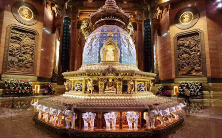 玩法:在街区制高点拈花塔下,观看晚间庄严的亮塔仪式;在妙音台欣赏古筝、尺八等传统乐器演奏,聆听禅音。