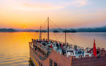 玩法:乘船游览梅峰岛(登高俯瞰千岛湖全景)、渔乐岛(体验水上娱乐、用餐)、月光岛(由情园、系园等组成,感受爱情文化与夜游魅力)。