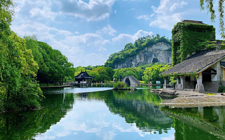 玩法:漫步于镜水湾区域,欣赏由历代采石形成的众多形态各异的石景,如七星岩、蚕花洞等,了解古越千年采石文化。