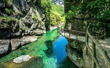 玩法:漫步龙门峡,欣赏"华东第一潭"龙门潭的碧绿水质,走过悬索桥,观赏龙门石谷,感受"水在石间流,石在水边长"的奇特景观。