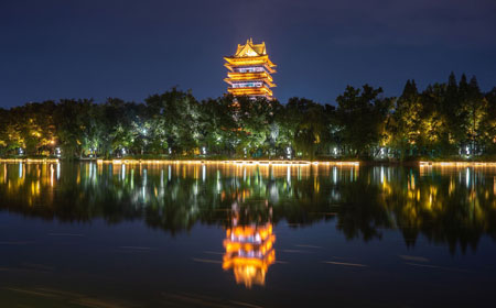① 在清风阁顶层使用广角镜头拍摄合肥老城区全景;② 浮庄水榭是拍摄倒影的绝佳位置。