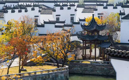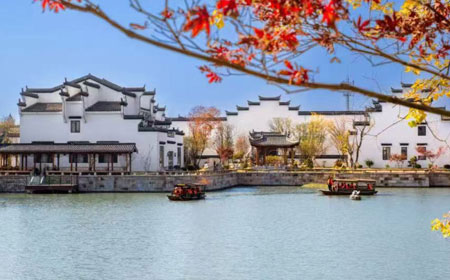 玩法:乘坐江南特色的乌篷船,沿着纵横交错的水道缓缓而行,从水上视角欣赏两岸徽派建筑,感受“船在水上行,人在画中游”的意境。