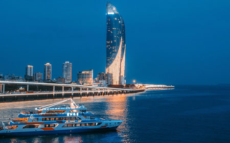 玩法:观赏从第一码头到会展中心的现代化建筑群灯光秀,特别关注世茂双子塔、厦门国际中心等地标建筑。