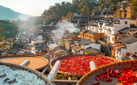 玩法:在最佳摄影点拍摄经典“晒秋”场景,观看村民现场晾晒辣椒、玉米、南瓜等农作物,感受“朝晒暮收”、晒台对话的田园生活。
