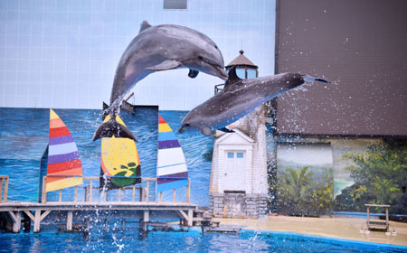 玩法:海象仰卧起坐PK赛(13:00场次),海豚音波互动(随机抽取观众指挥表演)。