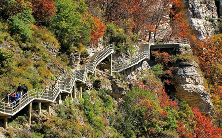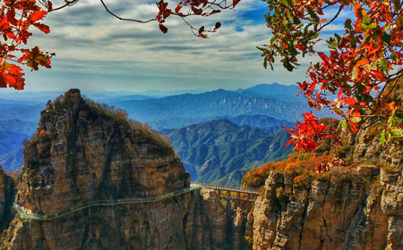 玩法:悬挑出山体4.5米的透明平台,体验"凌空漫步",秋季可拍红叶与奇峰同框。