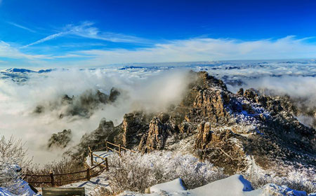 白石山世界地质公园——国家5A级景区、世界地质公园,以"北方第一奇山"著称,拥有全国独一无二的大理岩峰林地貌。核心价值:"云上仙境·空中画廊"——海拔2096米的悬空玻璃栈道、如梦如幻的云海奇观、鬼斧神工的天然石柱群,被《中国国家地理》评为"中国十大最美地质公园"之一。